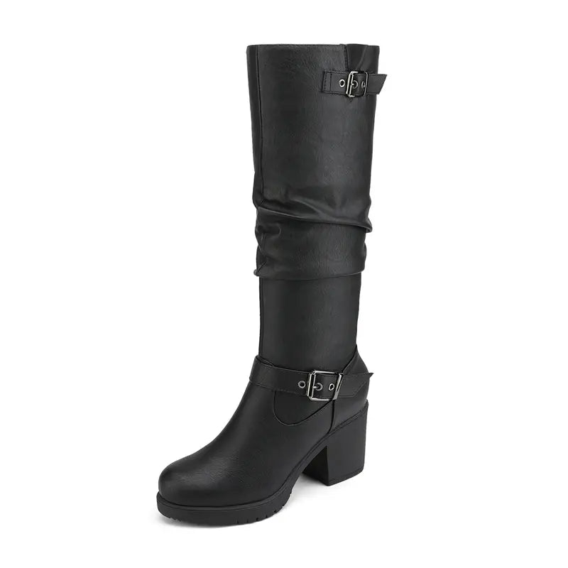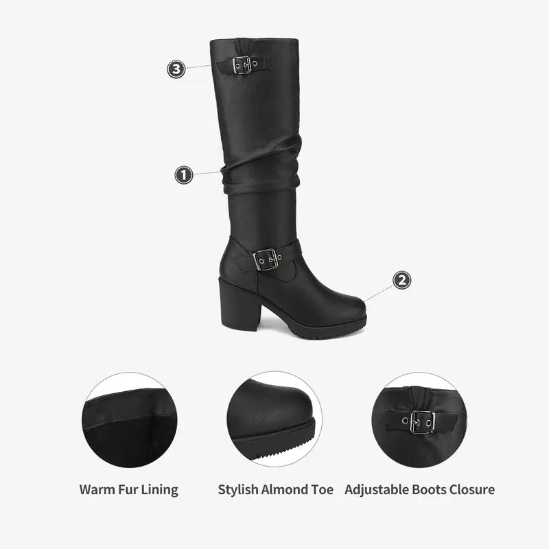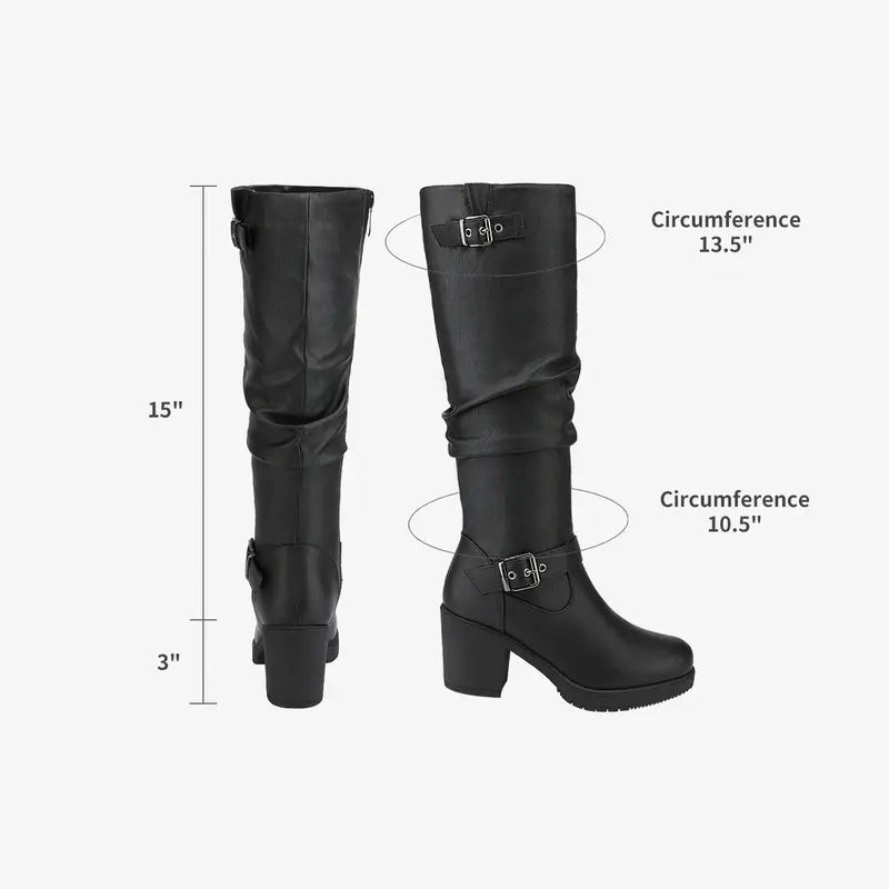 Extraordinary chic. Marvelous and impressive. Women's chunky knee-high boots. The latest in knee-high fashion are boots that bring a contemporary edge to the classic look. It's the classic more-than-professionally-unusual pair. These chunky heel boots are punctuated with a classic almond toe and chunky heel.